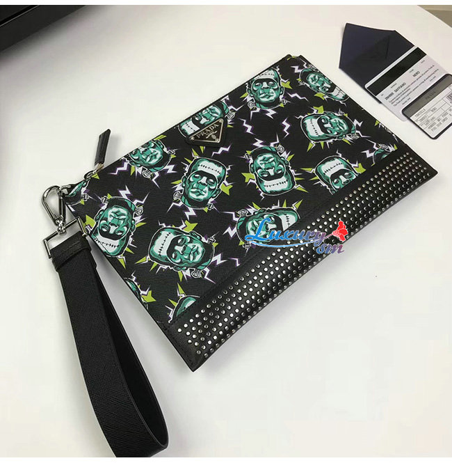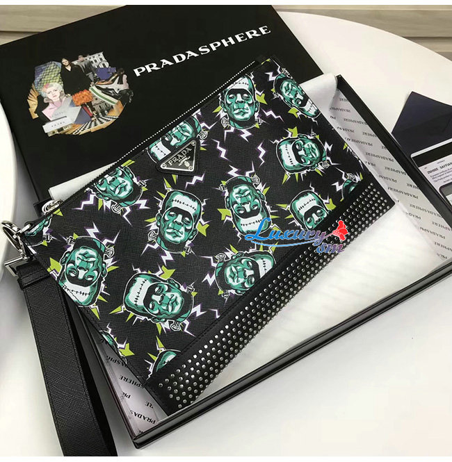 [스페셜오더]PRADA-2NH005 프라다 올오버 프랑켄슈타인 프린트 사피아노 가죽 파우치