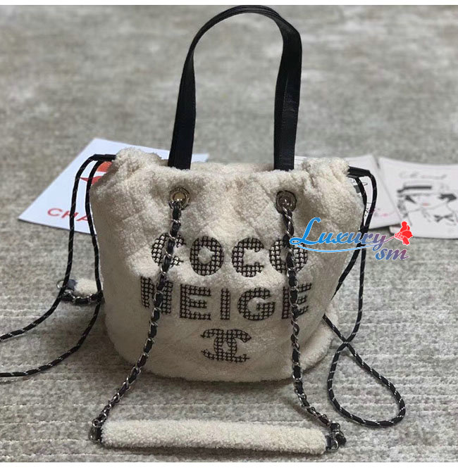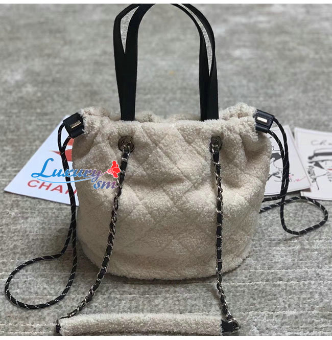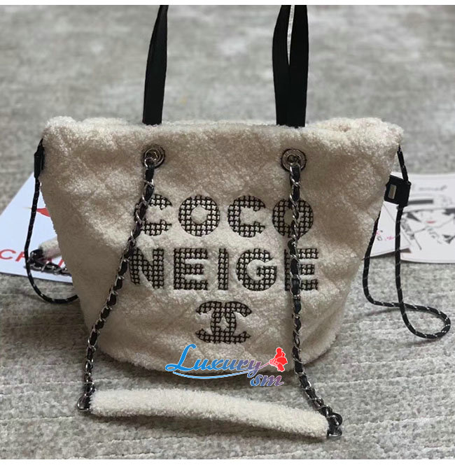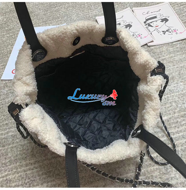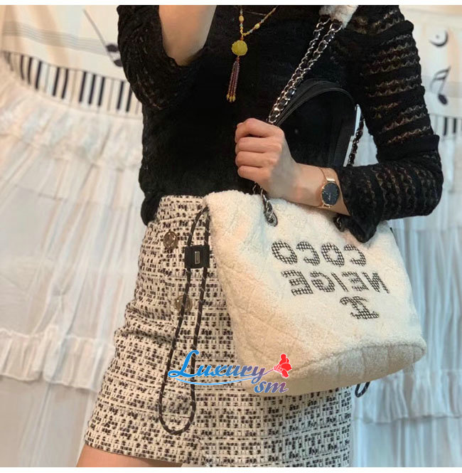 [스페셜오더]CHANEL-AS0981 샤넬 에크루 시어링 쉽스킨 트위드 실버메탈 스몰 쇼핑백