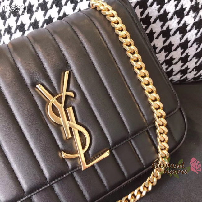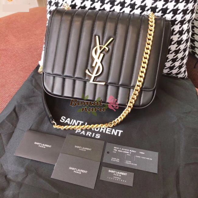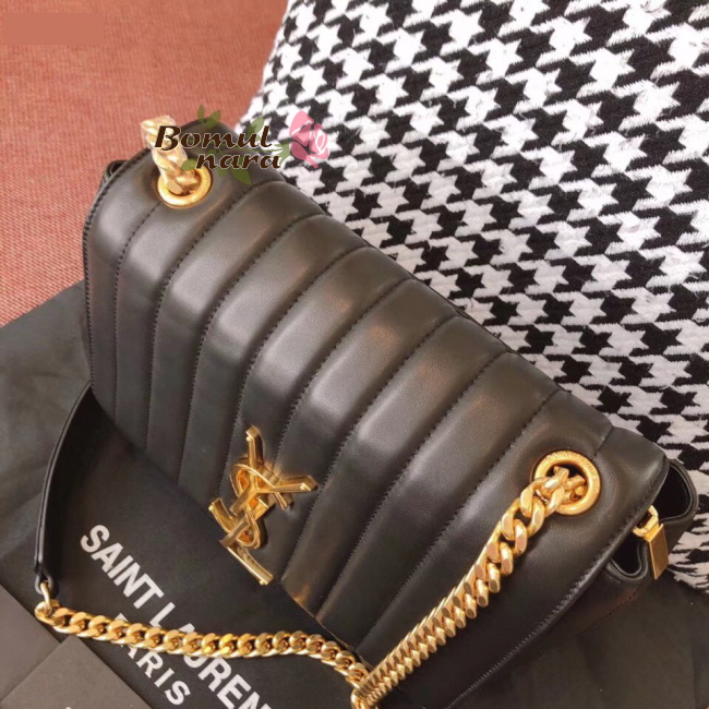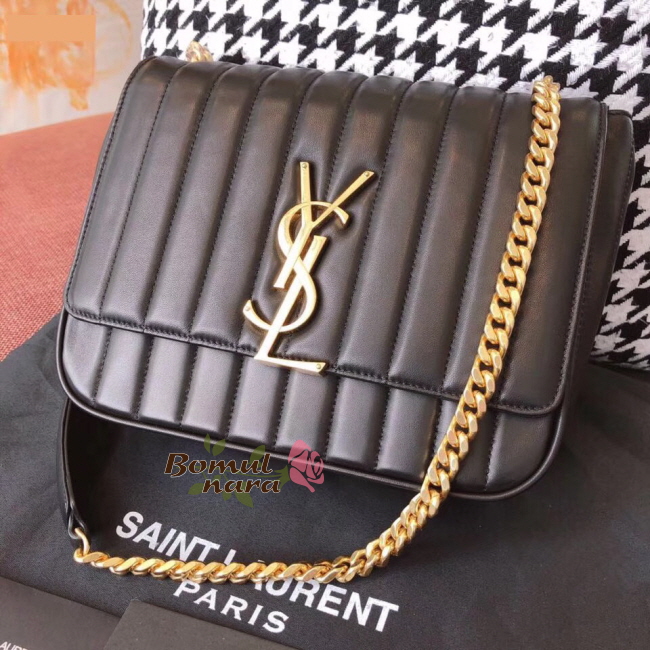 입생로랑 비키 숄더백은 골드 YSL이니셜 메탈 장식이