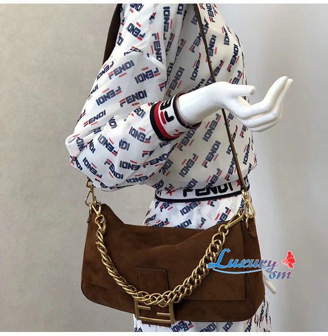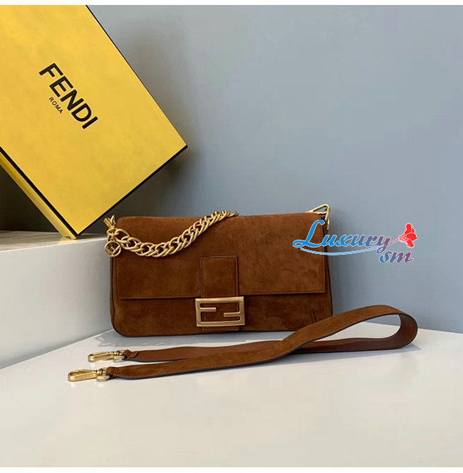[스페셜오더]FENDI-8BR771 펜디 브라운 스웨이드 염소 가죽 바게트 라지