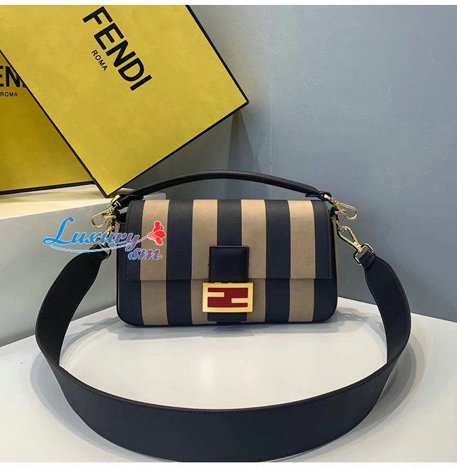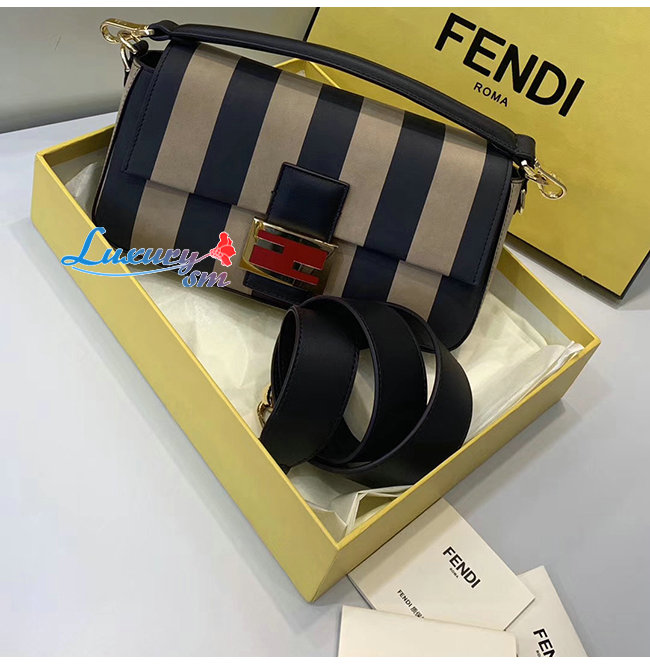 [스페셜오더]FENDI-8BR600 펜디 베이지 페이턴트 가죽 브라운/블랙 페퀸 스트라이프 양가죽 바게트