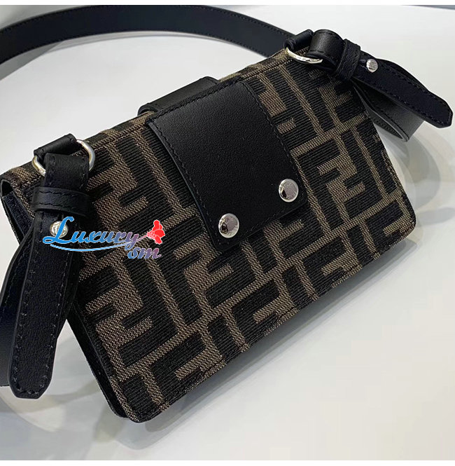 FF모티프 자카드와 블랙 컬러의 가죽 스트랩 잠금