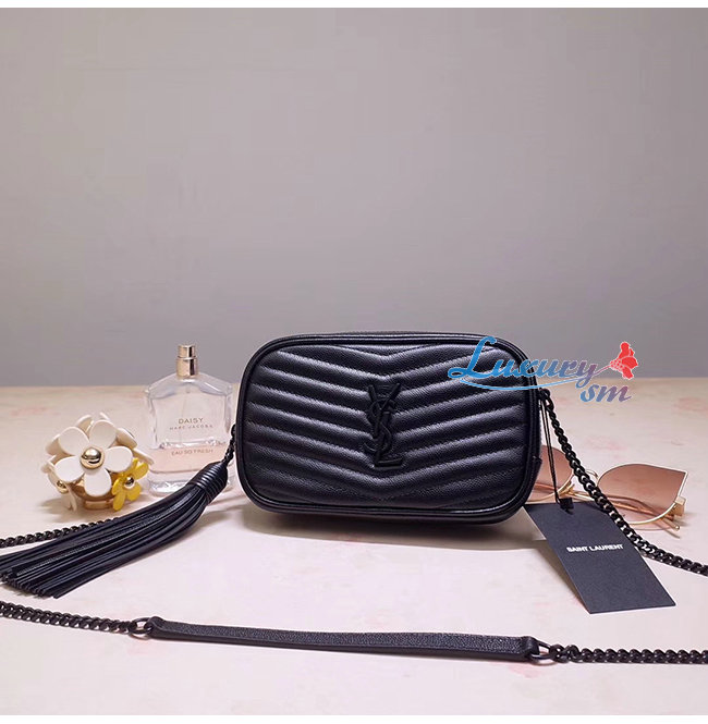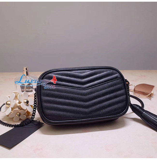 [스페셜오더]SAINT LAURENT-585040 생 로랑 블랙 마틀라세 그레인 송아지 가죽 루 미니백