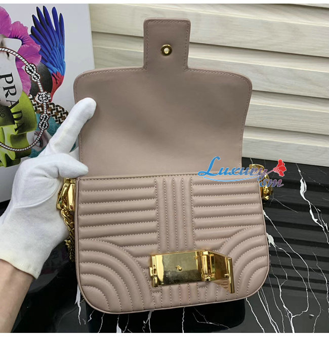 [스페셜오더]PRADA-1BD217 프라다 파우더 핑크 송아지 가죽 엠블럼 숄더백