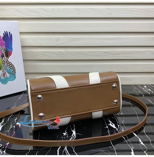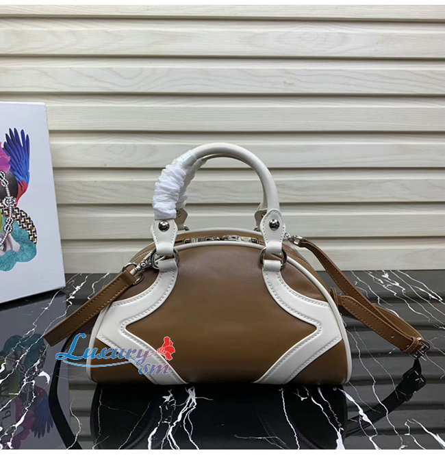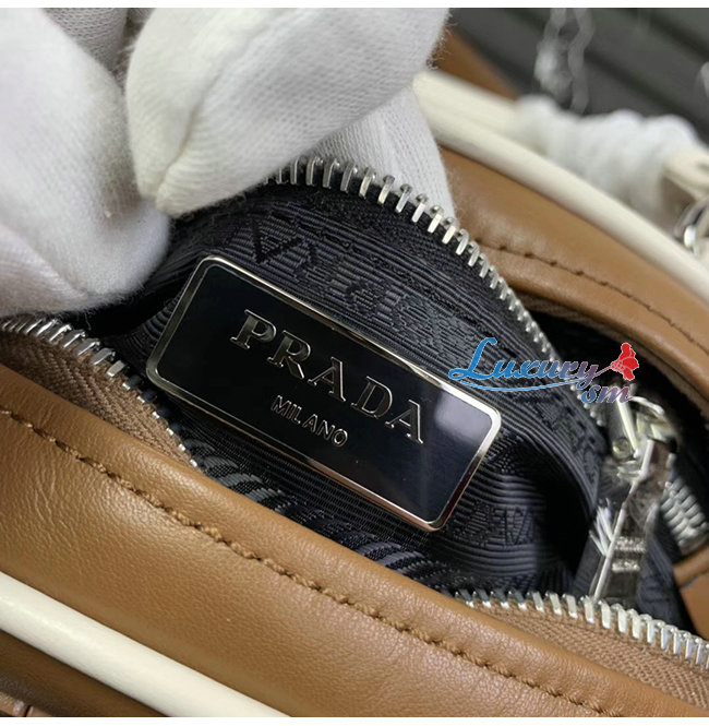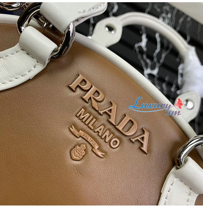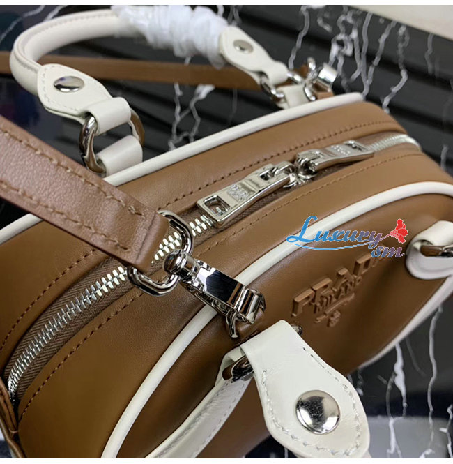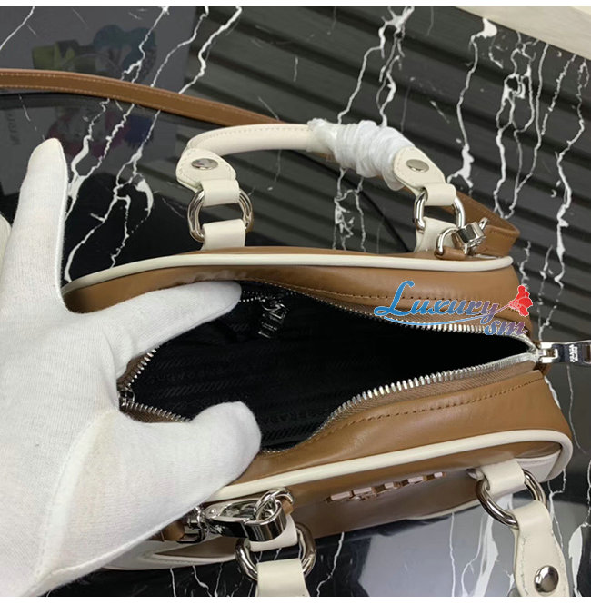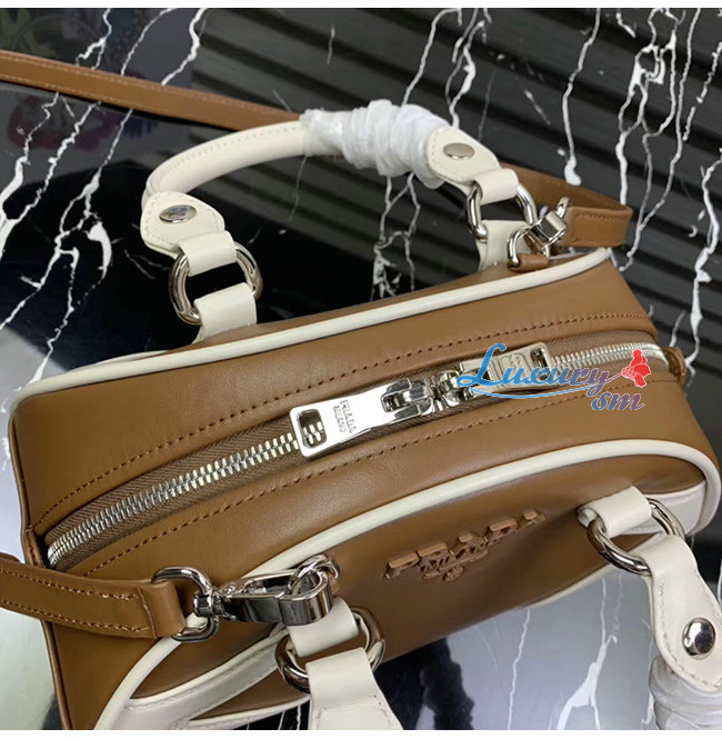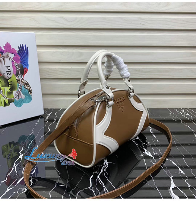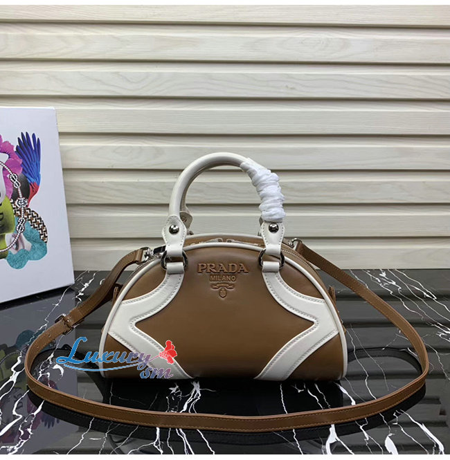 [스페셜오더]PRADA-1BB071 프라다 브라운/화이트 송아지 가죽 볼링백