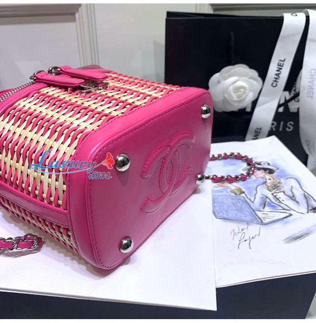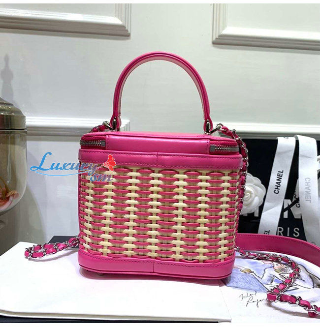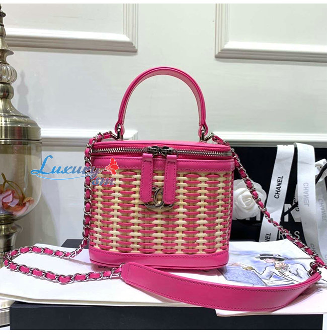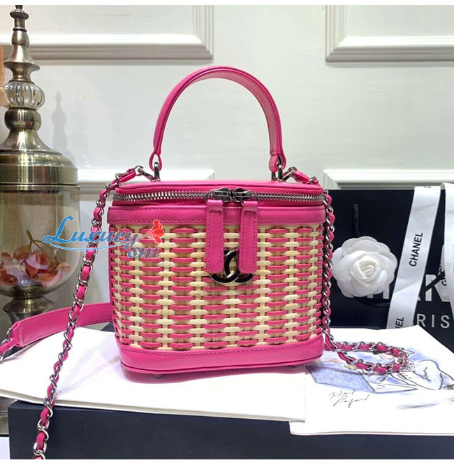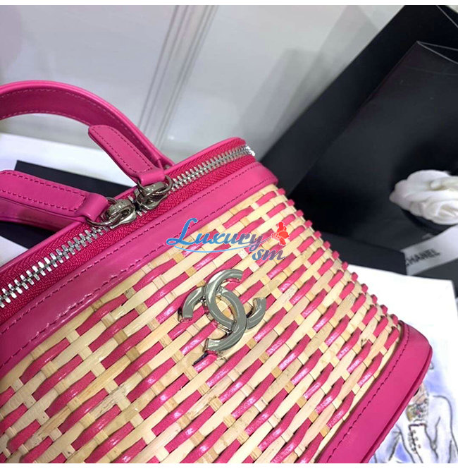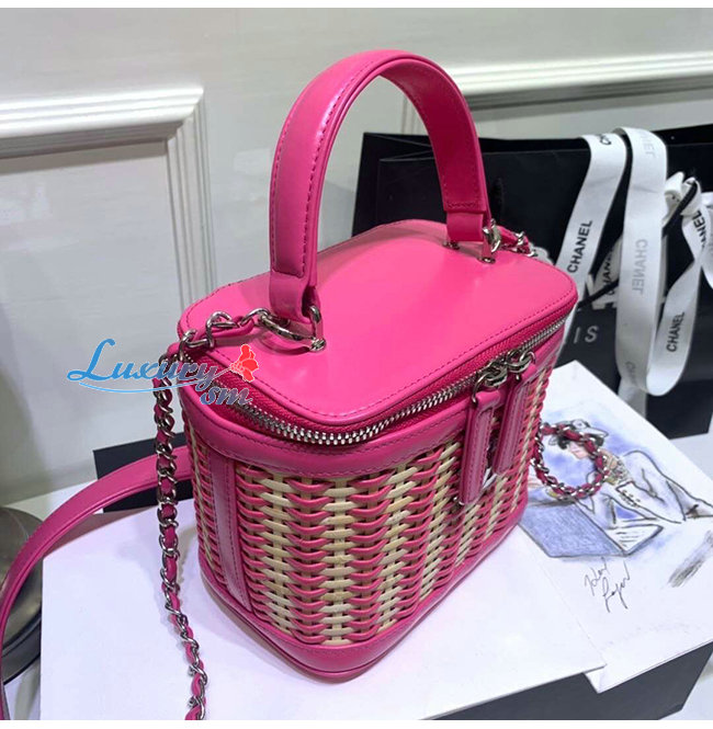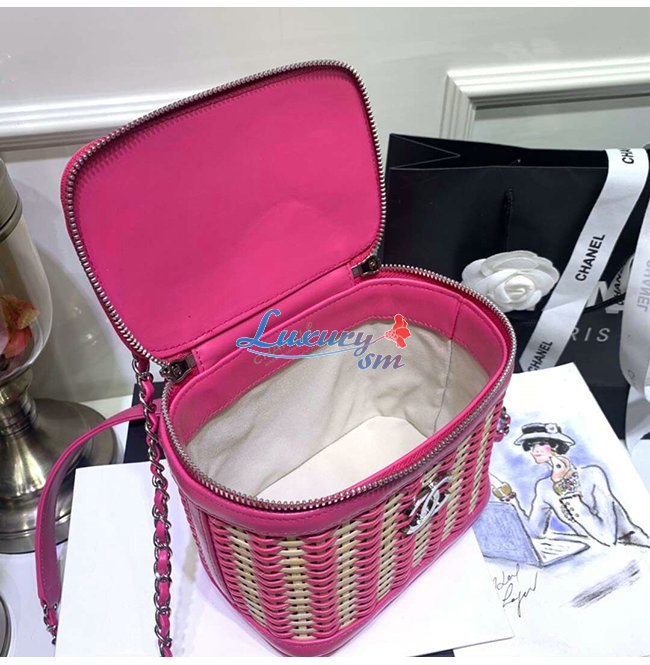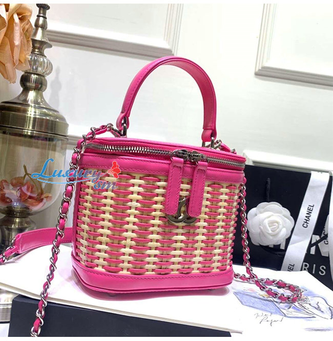 [스페셜오더]CHANEL-AS1352 샤넬 핑크/베이지 라탄 카프스킨 실버메탈 스몰 코스메틱 케이스