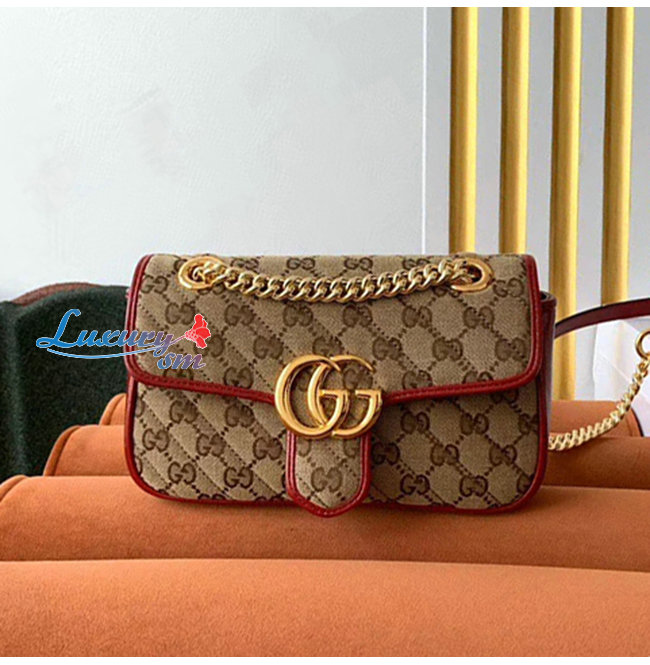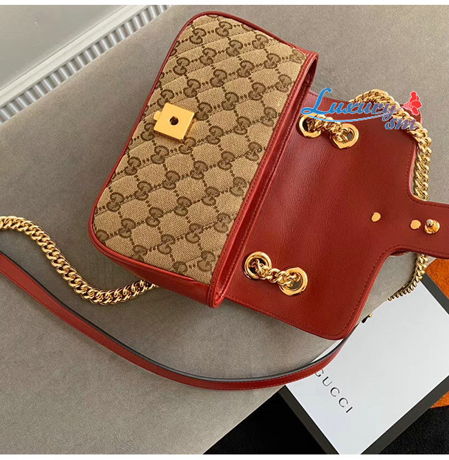 [스페셜오더]GUCCI-446744 8561 구찌 GG 마몽 베이지/레드 미니 숄더백