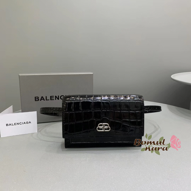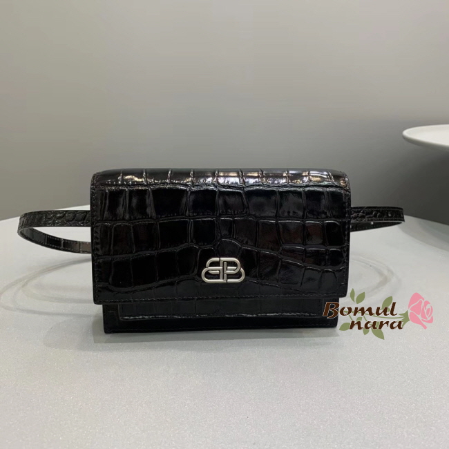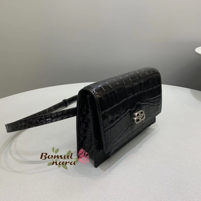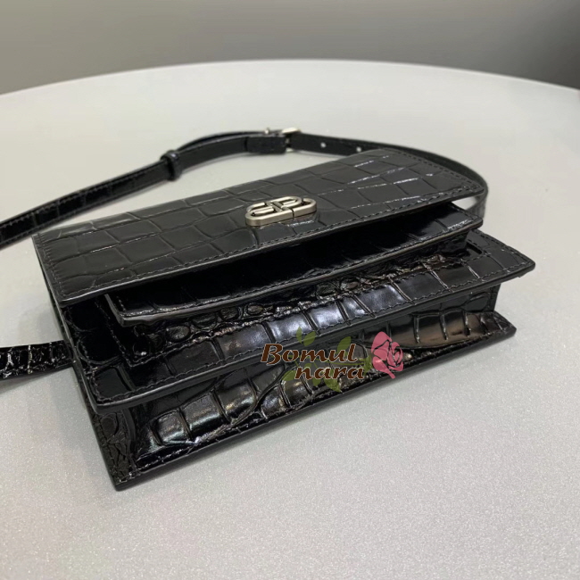 [스페셜오더]BALENCIAGA-5949381 발렌시아가 블랙 크로커다일st SHARP 샤프 벨트 백 XS