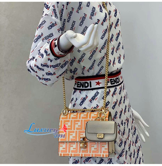 [스페셜오더]FENDI-8M0381 펜디 화이트/오렌지 더블 F 송아지 가죽 스몰 칸 아이
