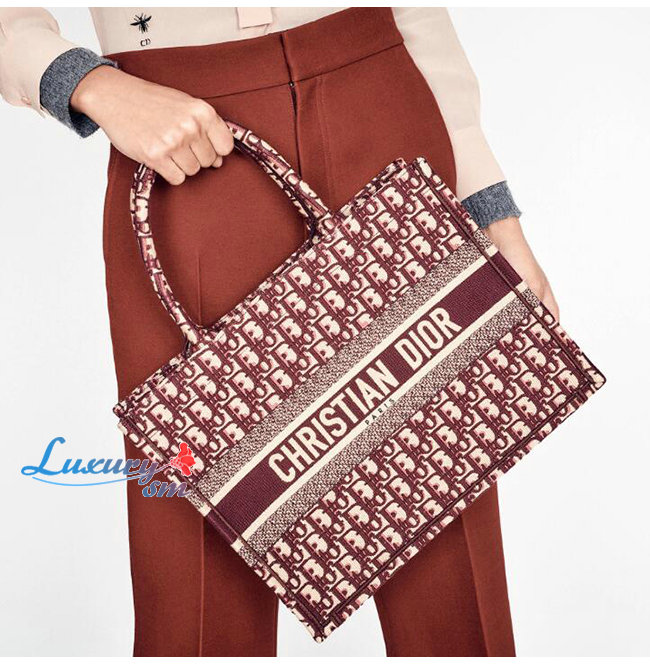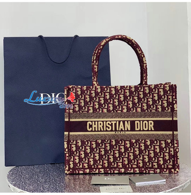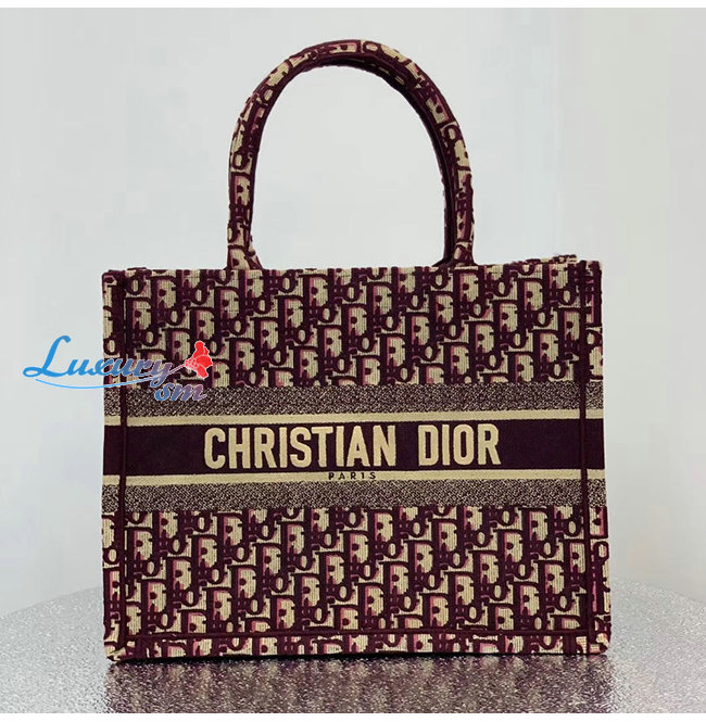 [스페셜오더]DIOR-M1296 디올 버건디 BOOK TOTE DIOR OBLIQUE 자수 스몰 백