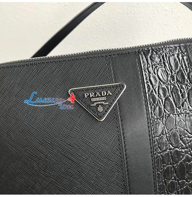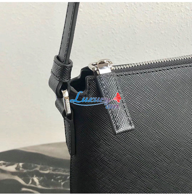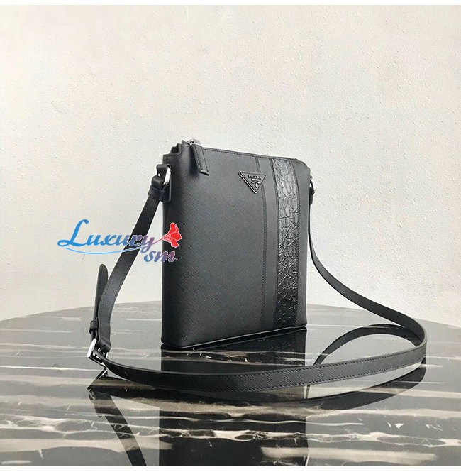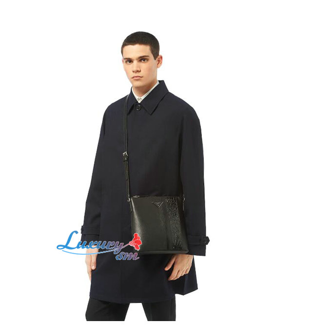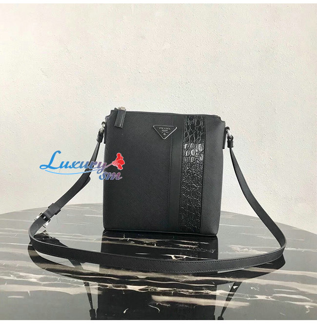 [스페셜오더]PRADA-2VH089 프라다 블랙 사피아노 가죽 크로커다일 트림 반둘리에백