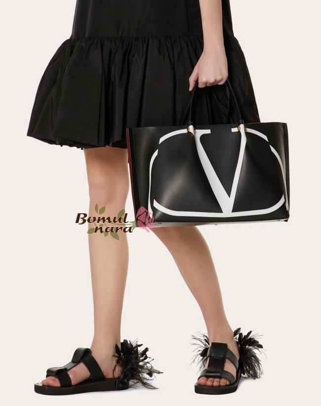 [스페셜오더]VALENTINO-RW0B0 발렌티노 블랙 미디엄 VLOGO 화이트 인레이 로고 이스케이프 쇼퍼백