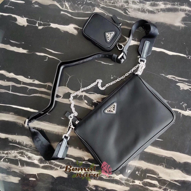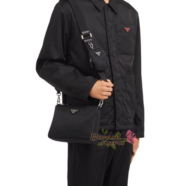 [스페셜오더]PRADA-2VH113 프라다 블랙 트라이앵글 로고 남성 호보 숄더백