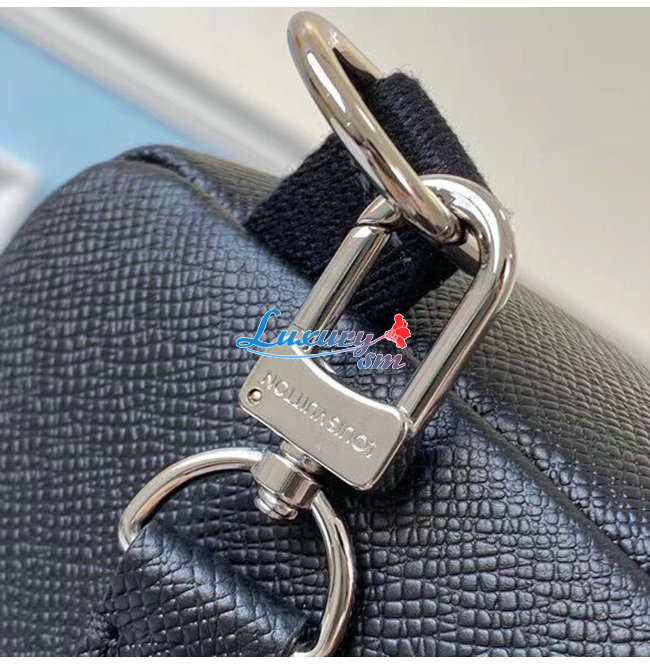 실버 톤 LV 이니셜이 돋보이는 타이가 에비뉴 슬링 백.