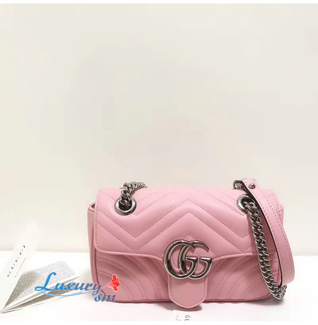 [스페셜오더]GUCCI-446744 5815 구찌 파스텔 핑크 GG 마몽 미니 마틀라세 숄더백