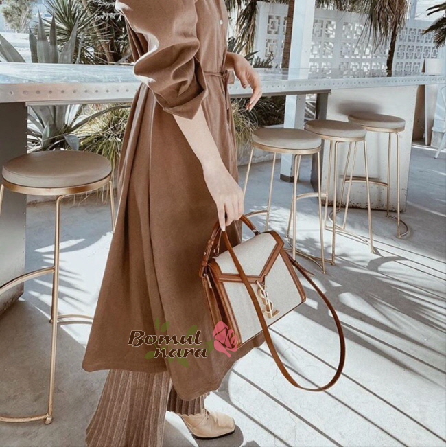 전면에 브론즈 메탈 하드웨어 생 로랑 로고를 통해
