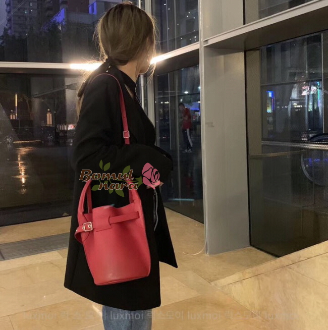 군더더기 없이 깔끔한 나노 버킷백은 탈부착 가능한 가죽