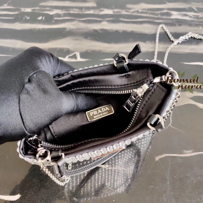 [스페셜오더]PRADA-1BA253 프라다 블랙 크리스탈 실크 새틴 미니 토트백 가격 : 350,000원