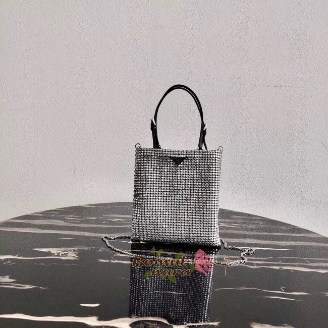 [스페셜오더]PRADA-1BA253 프라다 실버 크리스탈 실크 새틴 미니 토트백