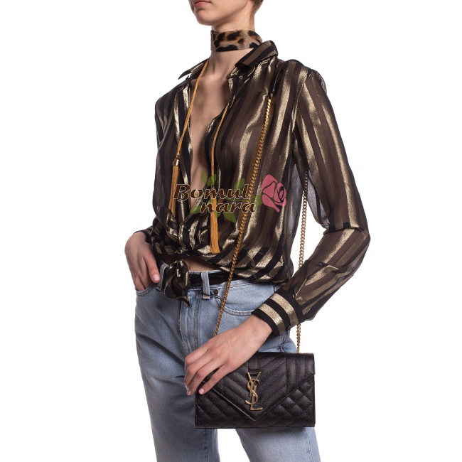 [스페셜오더]SAINT LAURENT-600195 생 로랑 블랙 마틀라세 골드 엔벨로프 스몰 숄더백