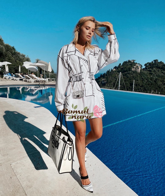 내추럴한 바디에 펜디 로마 자수 디테일이 돋보이는