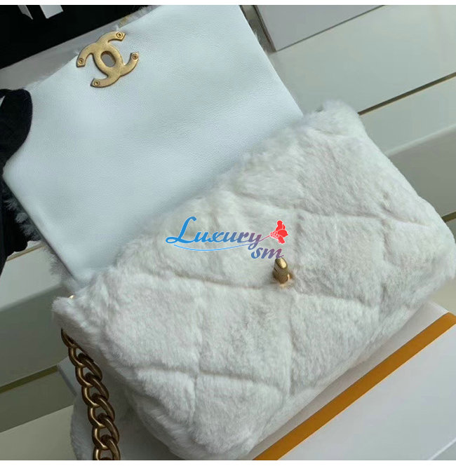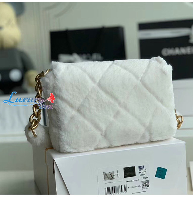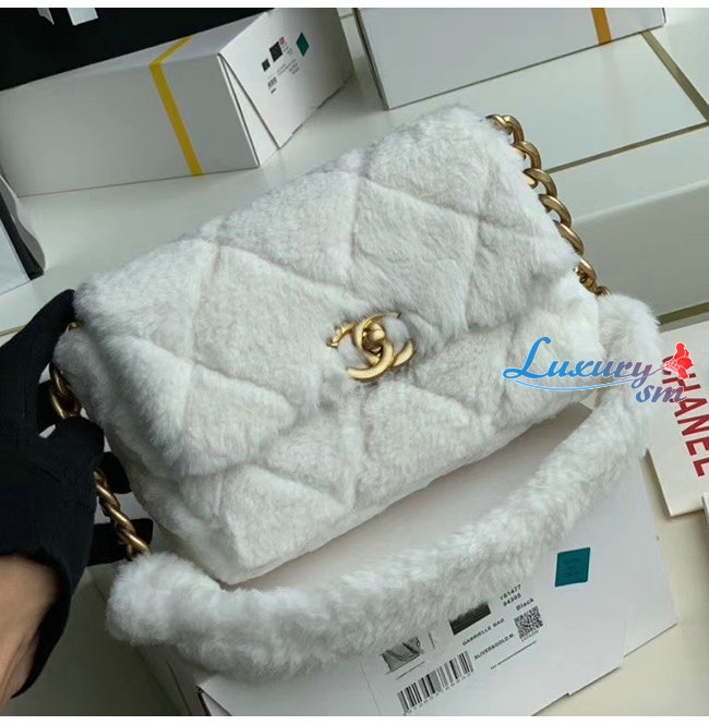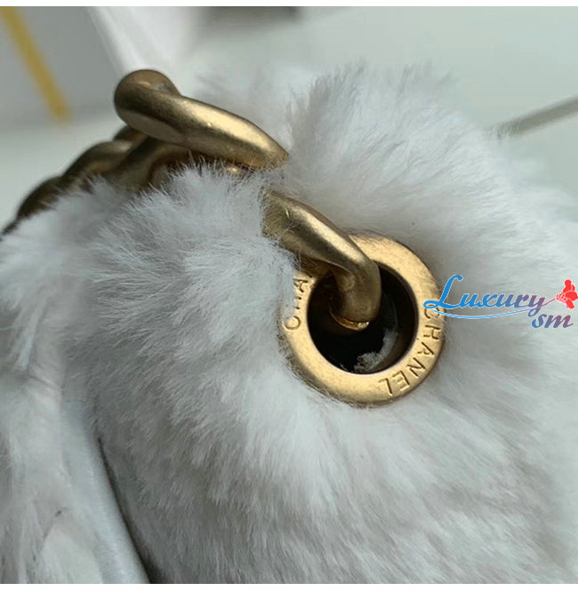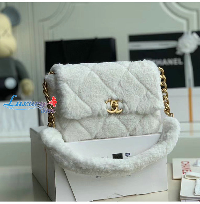 [스페셜오더]CHANEL-AS2240 샤넬 화이트 시어링 램스킨 스트라스 골드 메탈 플랩 백 가격 : 600,000원
