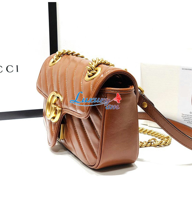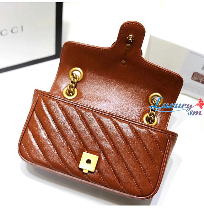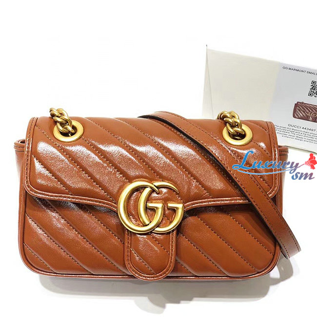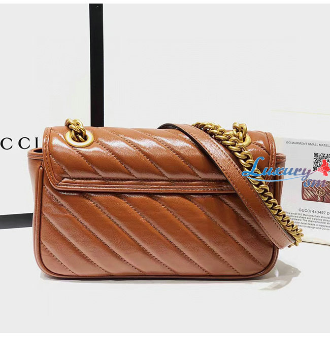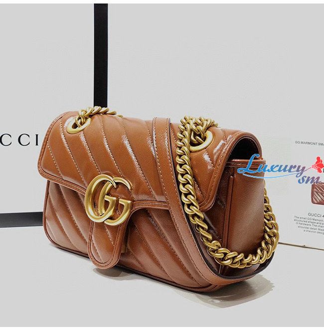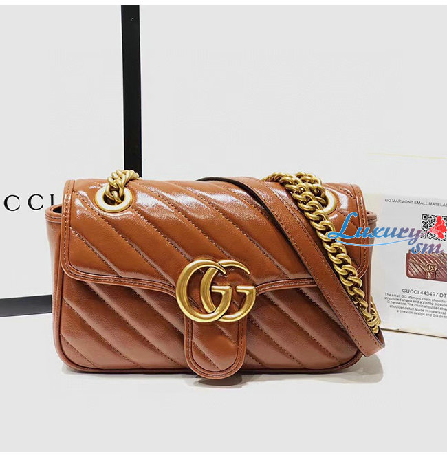[스페셜오더]GUCCI-446744 2535 구찌 GG 마몽 브라운 마틀라세 가죽 미니 숄더 백