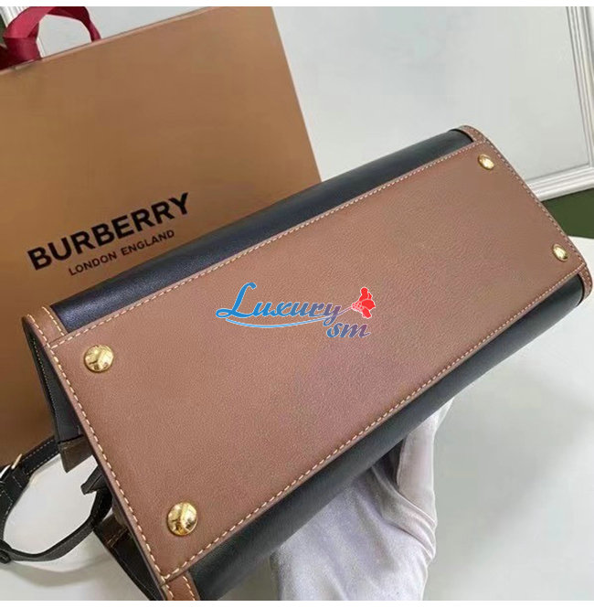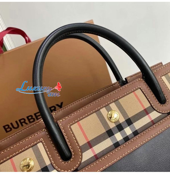 [스페셜오더]BURBERRY-80252691 버버리 블랙 스몰 레더 빈티지 체크 투 핸들 타이틀 백