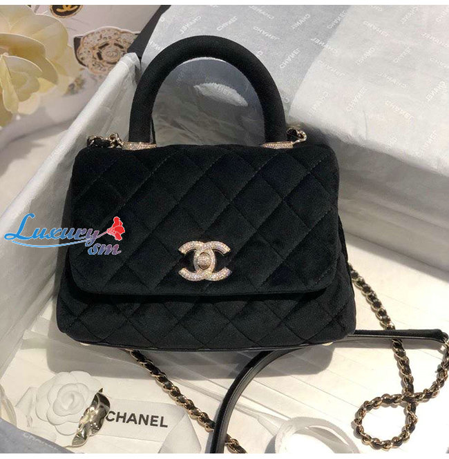 [스페셜오더]CHANEL-AS2215 샤넬 블랙 벨벳 스트라스 실버메탈 핸들 장식 미니 플랩 백