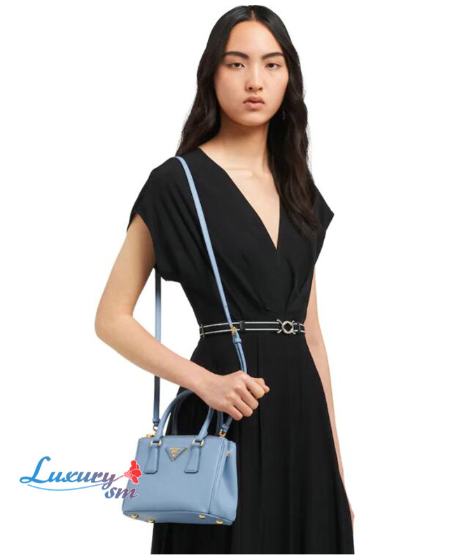 [스페셜오더]PRADA-1BA906 프라다 블루 사피아노 가죽 마이크로 갤러리아 탑 핸들백