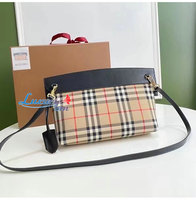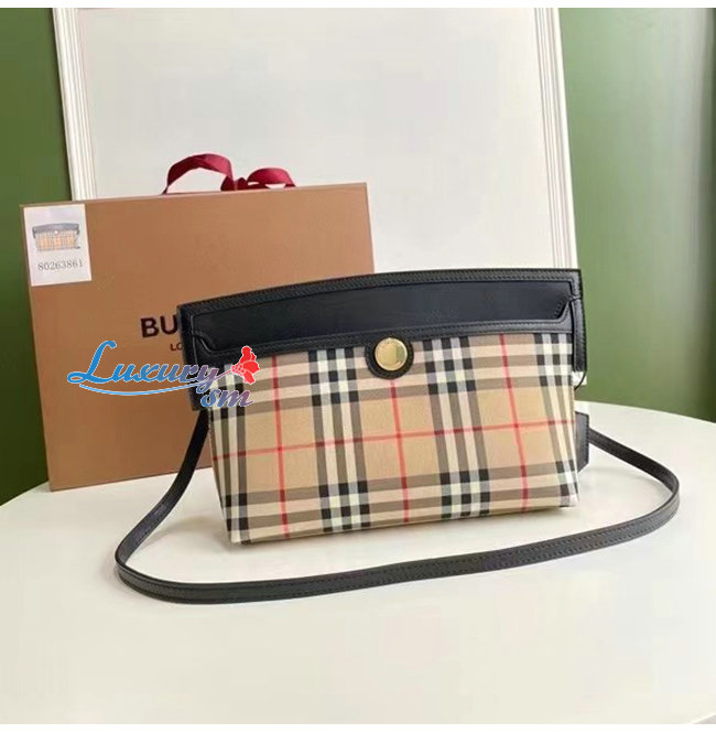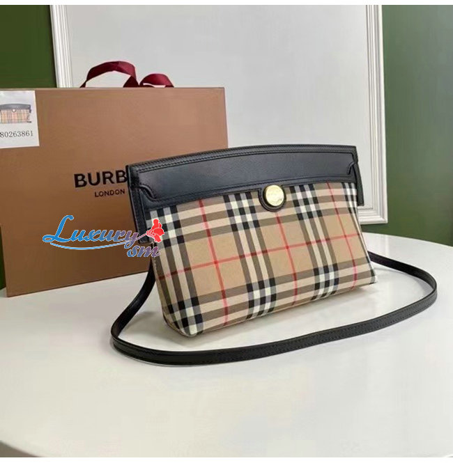 [스페셜오더]BURBERRY-80268361 버버리 블랙 빈티지 체크 레더 소사이어티 클러치