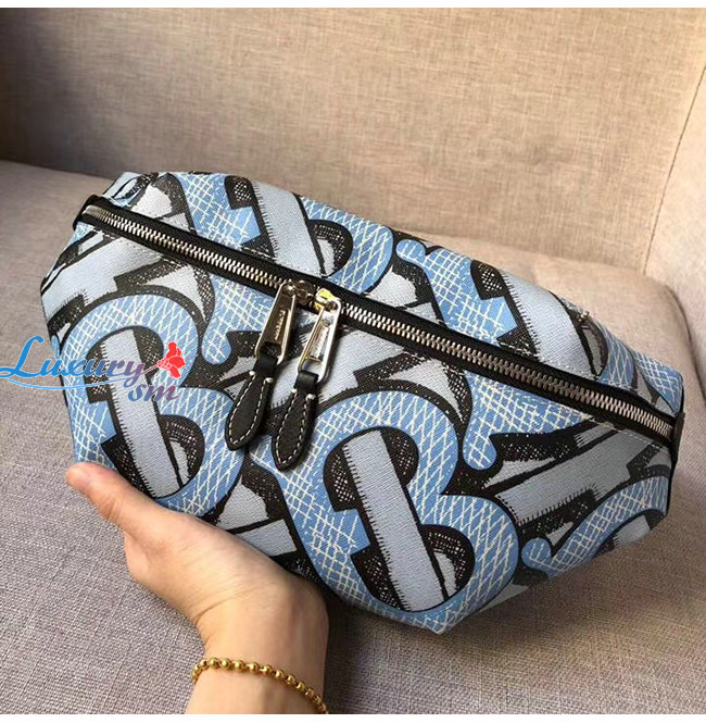 [스페셜오더]BURBERRY-80324721 버버리 페일 아쥐르 모노그램 프린트 E-캔버스 쏘니 범 백