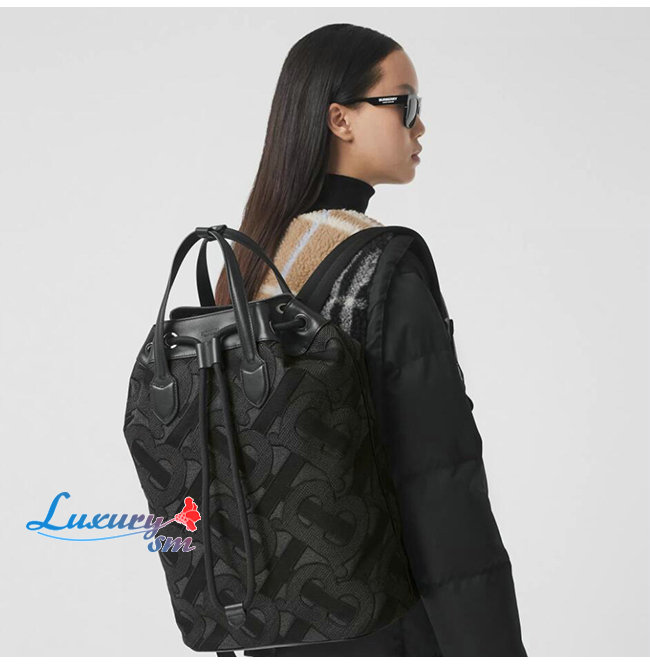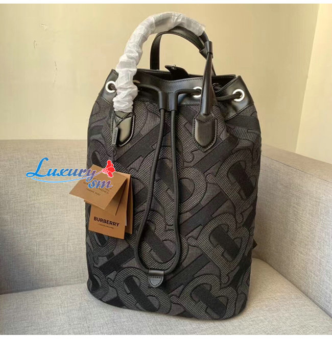 [스페셜오더]BURBERRY-80347661 버버리 차콜 그레이 모노그램 코튼 드로스트링 백팩