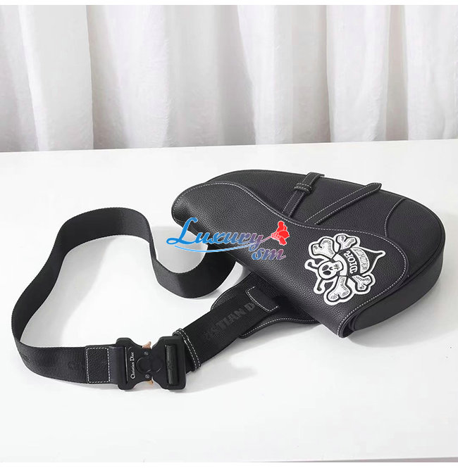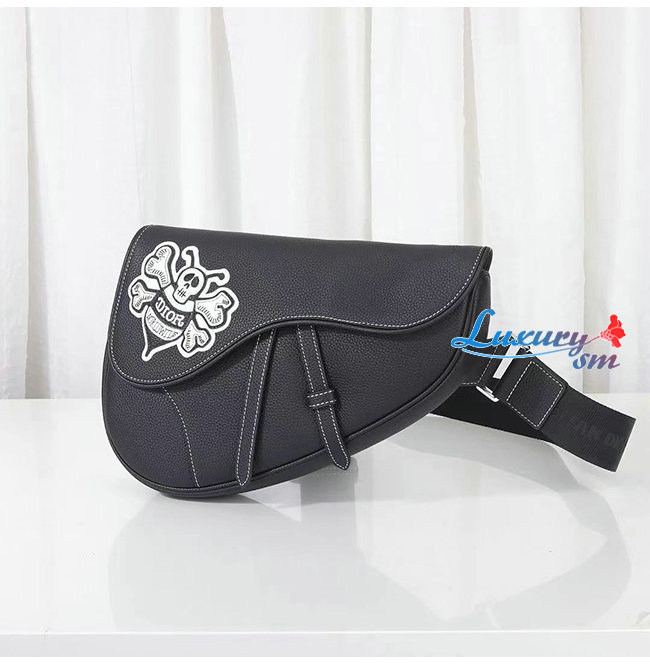 [스페셜오더]DIOR-1ADPO171 디올 블랙 그레인 송아지 가죽 DIOR AND SHAWN 꿀벌 패치 자수 SADDLE 파우치 가격 : 380,000원