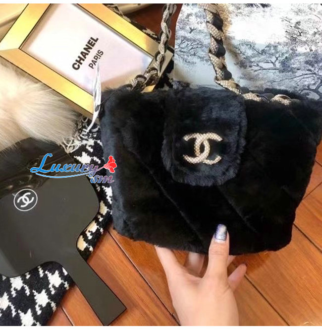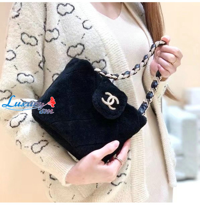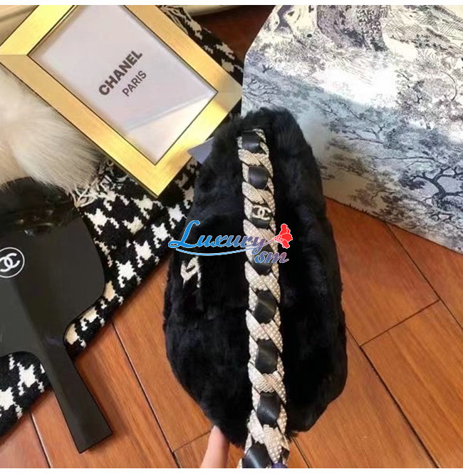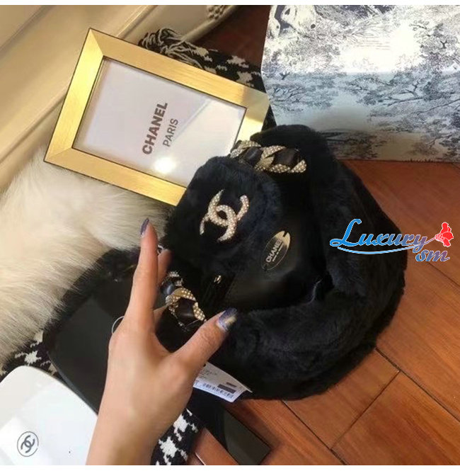[스페셜오더]CHANEL-AS2257 샤넬 블랙 시어링 램스킨 스트라스 골드 메탈 버킷백
