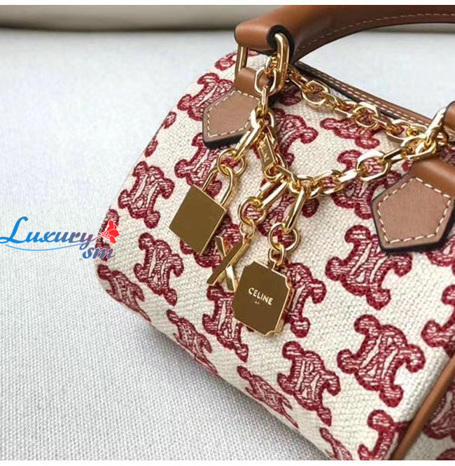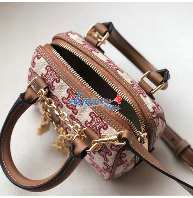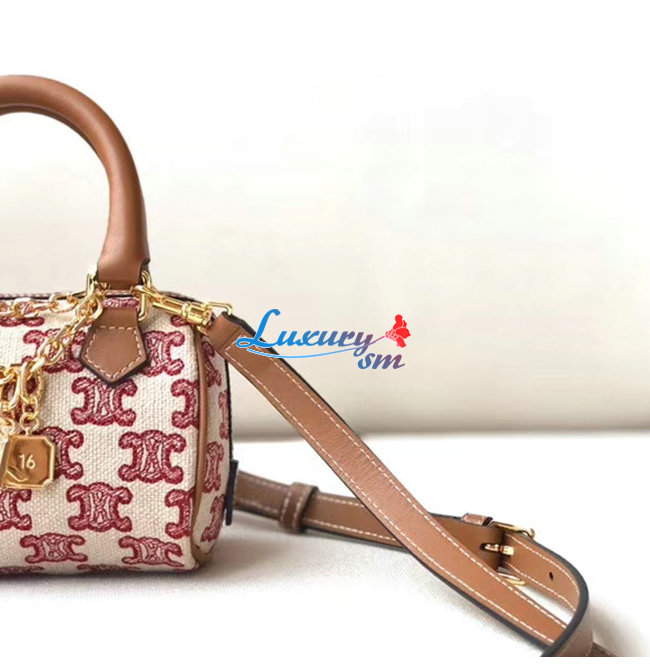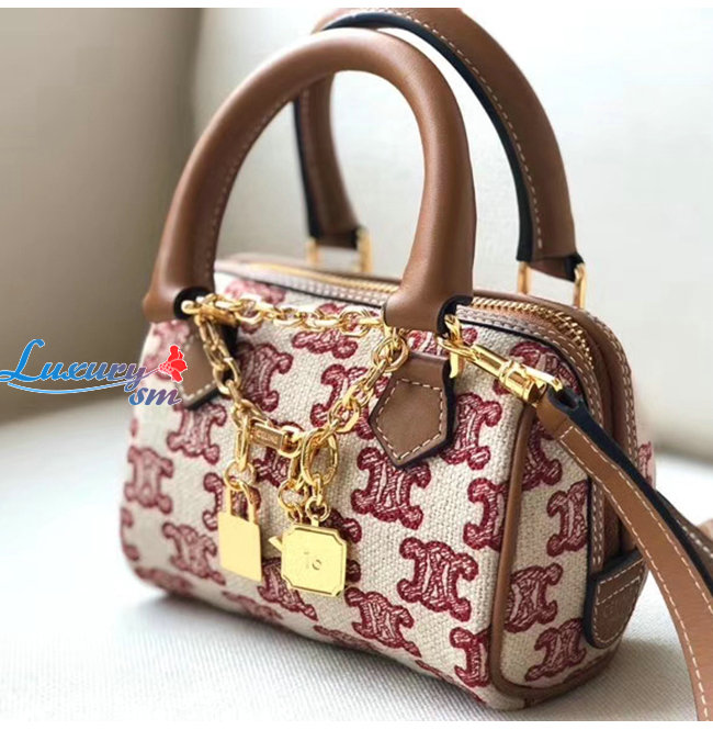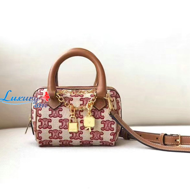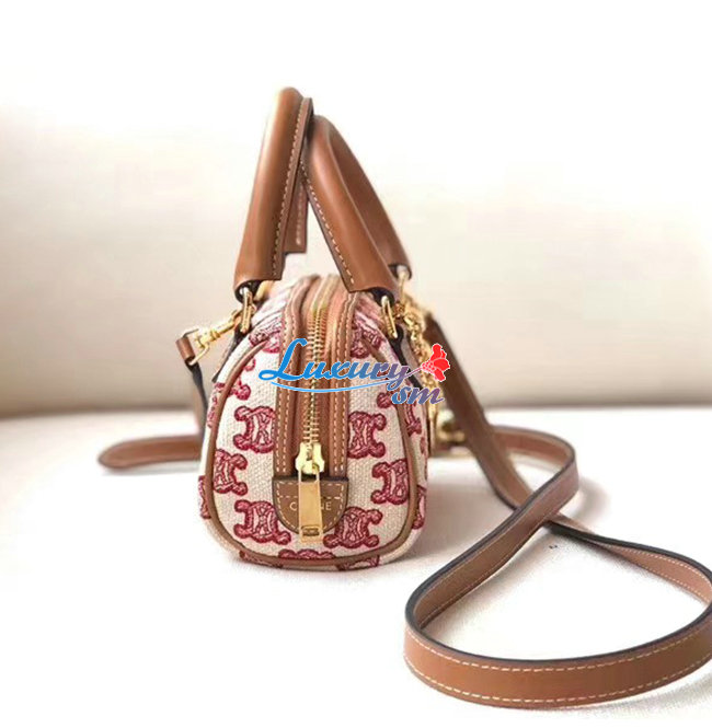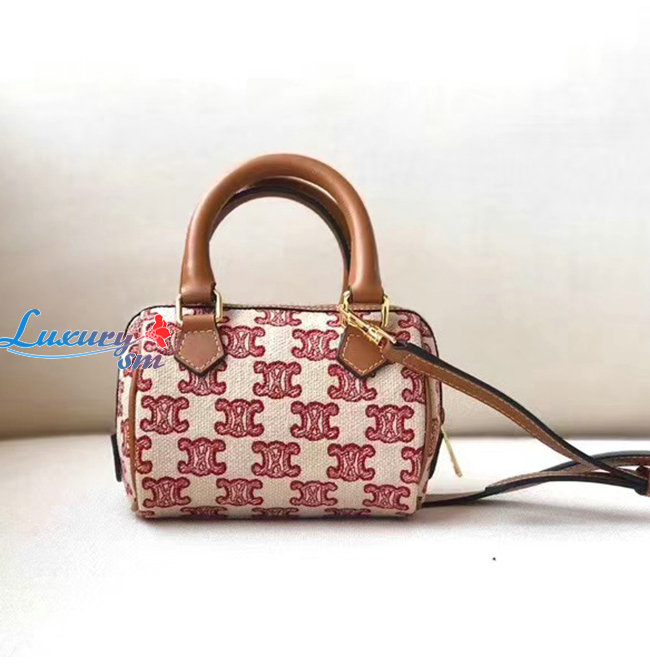 [스페셜오더]CELINE-195112 셀린느 브라운/핑크 트리오페 자수 미니 보스턴 백