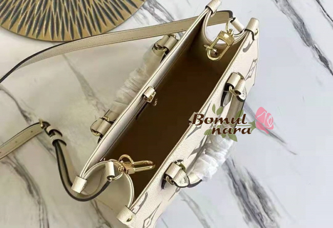 온더고 PM 토트. 양각으로 은은하게 새긴 오버사이즈 자이언트
