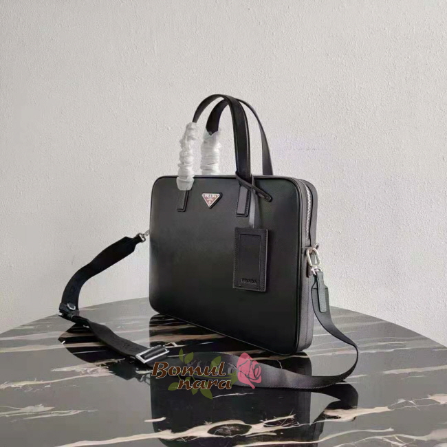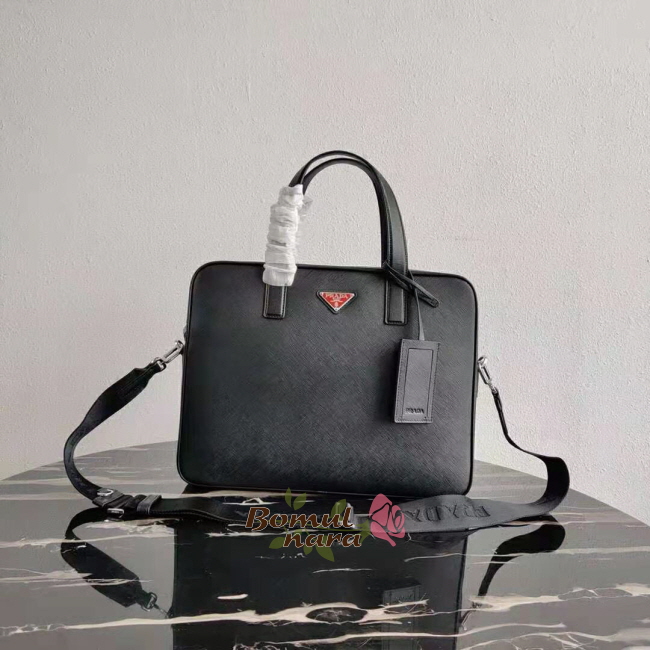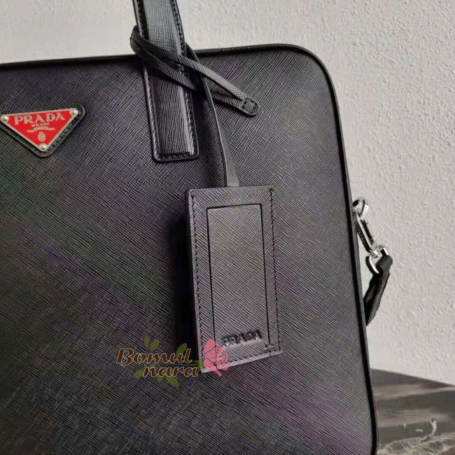 [스페셜오더]PRADA-2VE368 프라다 블랙 사피아노 가죽 블랙 트라이앵글 로고 브리프케이스