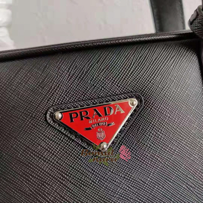 [스페셜오더]PRADA-2VE368 프라다 블랙 사피아노 가죽 레드 트라이앵글 로고 브리프케이스