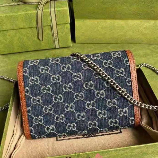 [스페셜오더]GUCCI-401231 4483 구찌 블루 디오니서스 오가닉 GG 데님 미니 체인 지갑