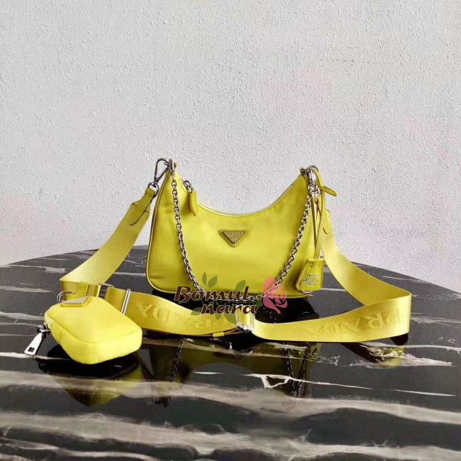 [스페셜오더]PRADA-1BH204 프라다 레몬 옐로우 나일론 리에디션 멀티 호보백