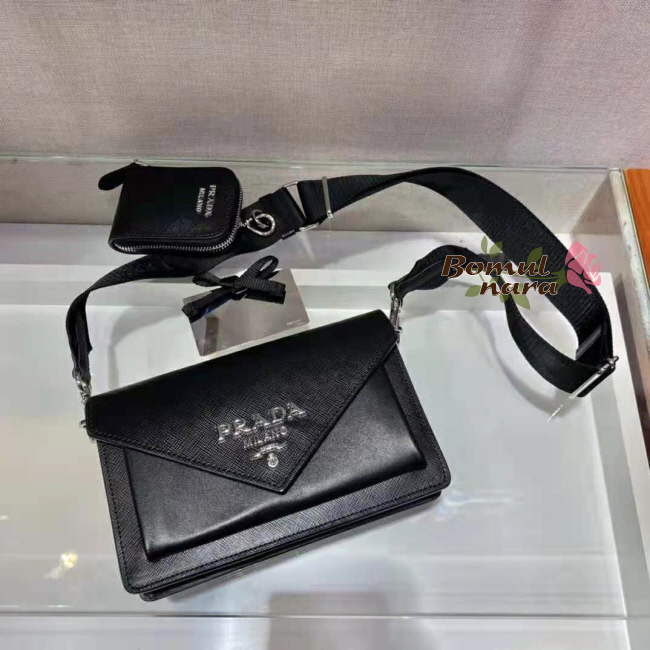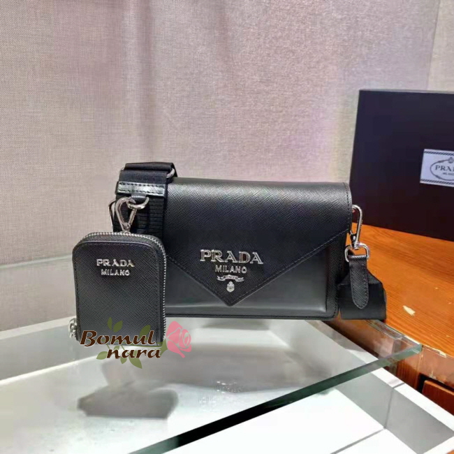 [스페셜오더]PRADA-1BP020 프라다 블랙 사피아노 가죽 미니 엔벨로프 백