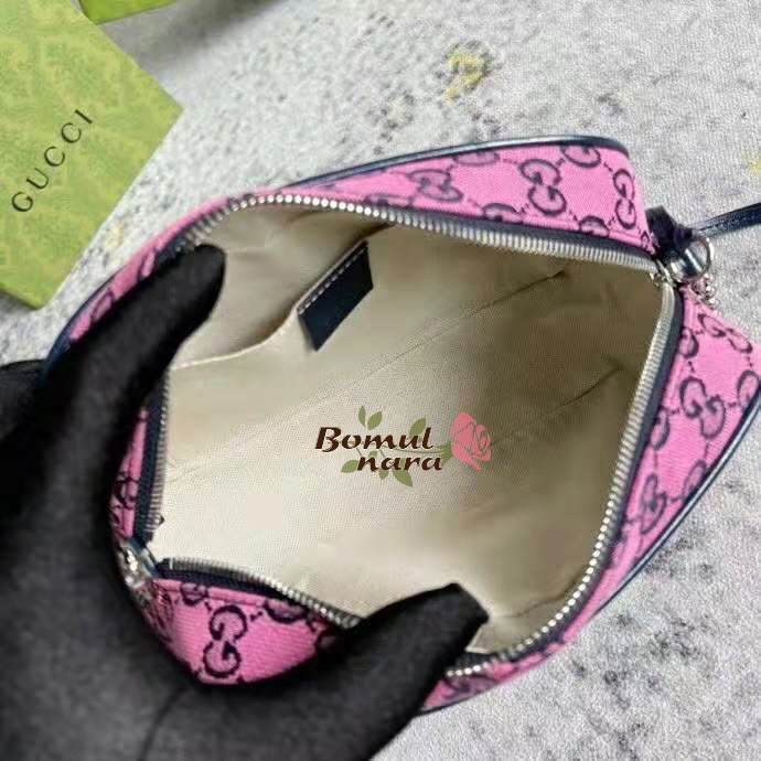 핑크 사선형 마틀라세 GG 캔버스 / 블루 가죽 트리밍