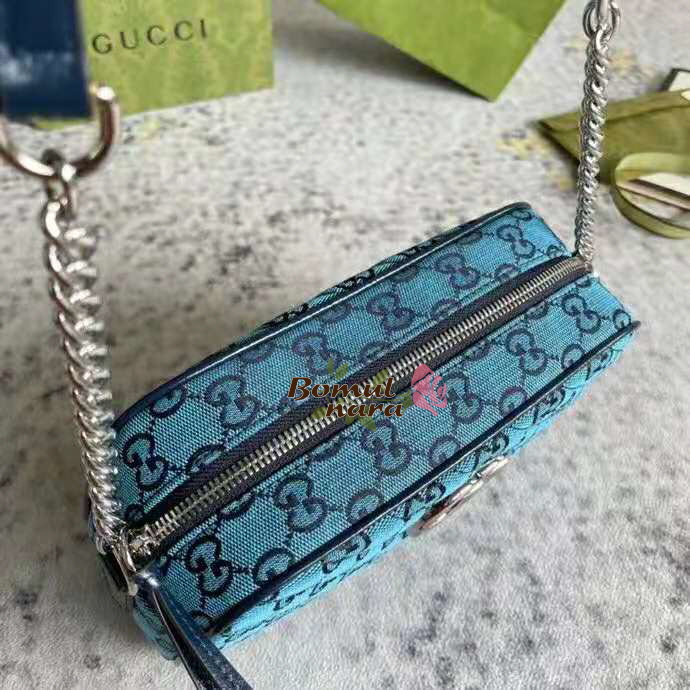 [퍼팩트버전]GUCCI-447632 4164 구찌 라이트 블루 GG 마몽 GG 멀티컬러 스몰 숄더백
