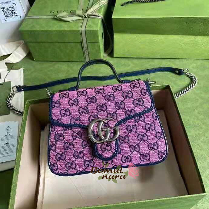 [스페셜오더]GUCCI-583571 4186 구찌 GG 마몽 블루 마틀라세 미니 탑 핸들백