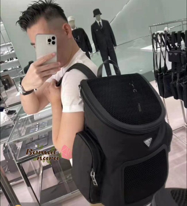백팩형 반려동물 가방으로 프라다의 아이코닉