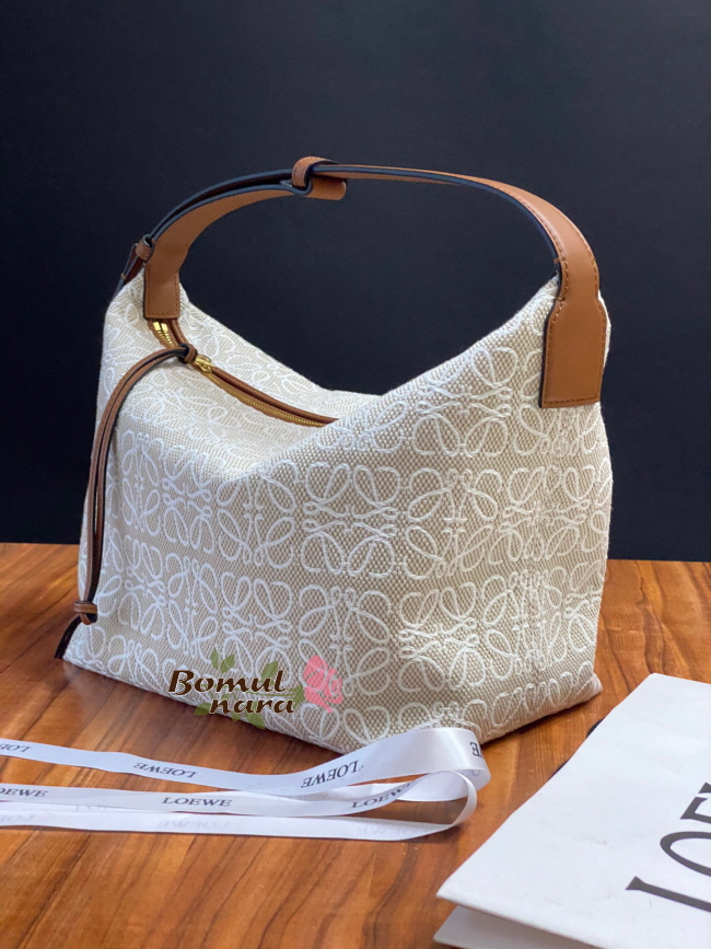 [스페셜오더]LOEWE-A907K 로에베 Ecru&Tan 아나그램 자수 미디엄 CUBI 숄더백 가격 : 340,000원