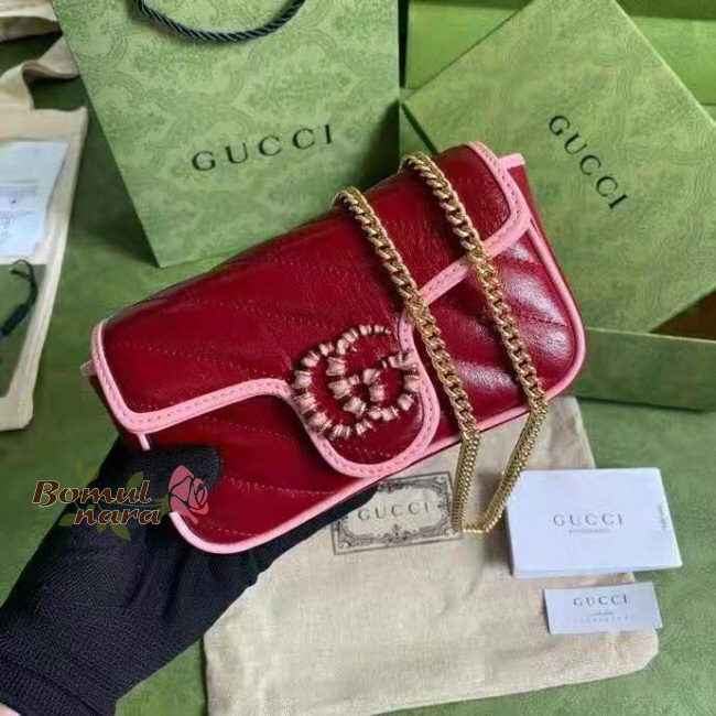[스페셜오더]GUCCI-574969 6476 구찌 레드&핑크 GG 마몽 수퍼 미니 백