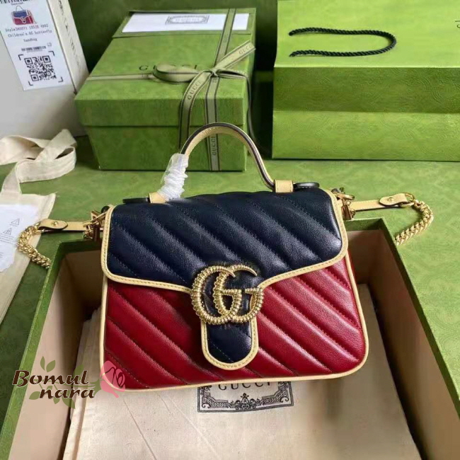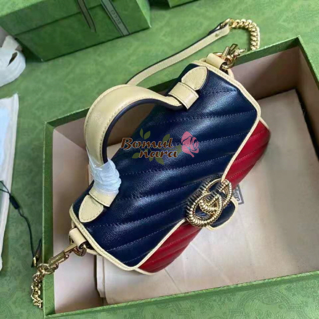 [스페셜오더]GUCCI-583571 6775 구찌 블루&레드 GG 마몽 미니 탑 핸들 백