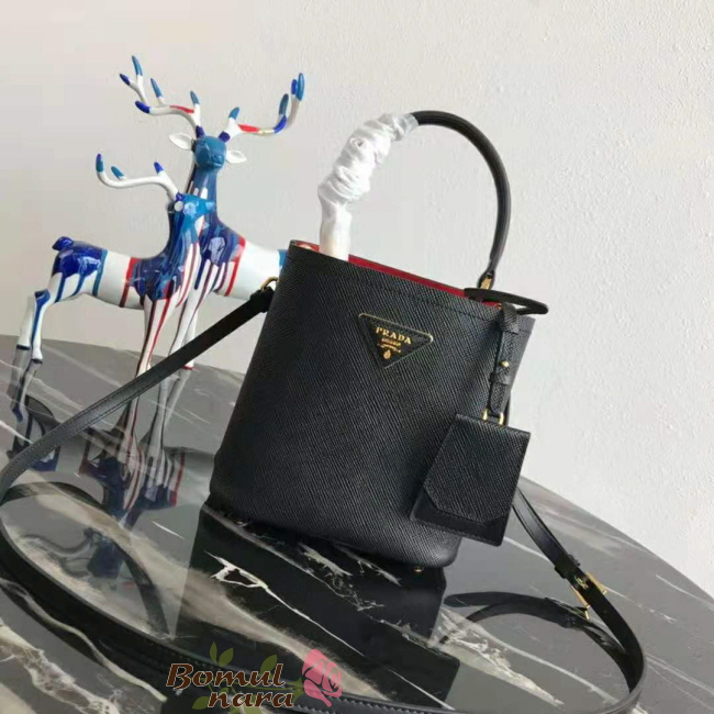 [스페셜오더]PRADA-1BA217 프라다 블랙 파니에 사피아노 가죽 스몰 숄더백